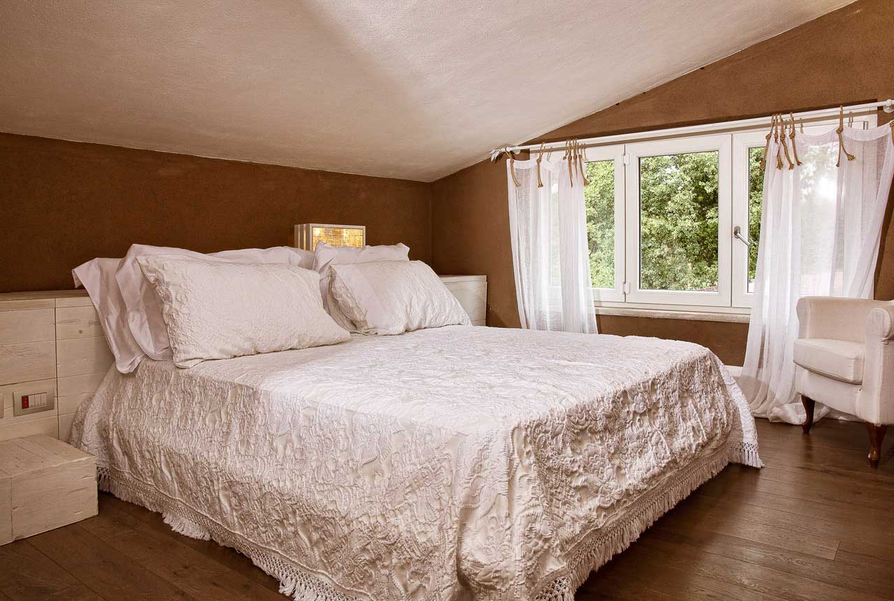 creati con gli antichi setacci per la farina, fanno rivivere anche in questo caso uno dei mestieri più antichi del mondo, in una camera accogliente e spaziosa, con vista giardino e pavimenti in pregiato parquet.