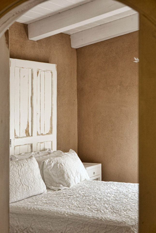 Il sapiente processo di rielaborazione dei materiali che ha accompagnato la creazione di tutti gli elementi d’arredo delle stanze della Pampa Relais è evidente anche in camere come quella del Fabbro. Antiche serrature, chiavi, maniglie, e pezzi unici forgiati dalle mani di esperti artigiani, come l’antico chiavistello in ferro battuto che funge da pomello della doccia, animano infatti un ambiente particolarissimo che culmina in una testiera del letto costituita da due antichi battenti di legno.