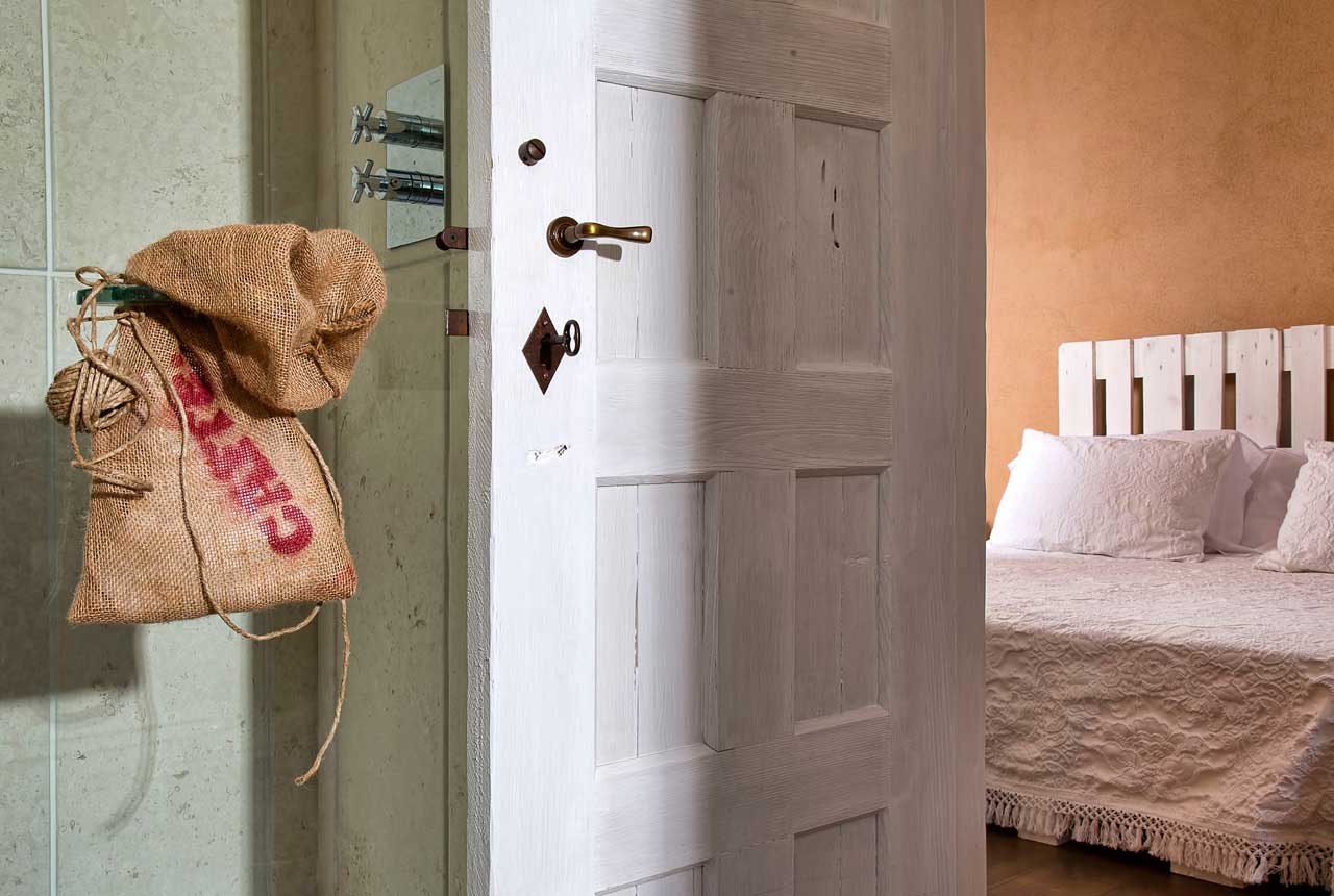 Anch’essa luminosa e confortevole, con vista sull’orto giardino del Relais, questa graziosa camera è caratterizzata principalmente dalla presenza deipallet, le classiche piattaforme di legno tipiche di questo antico mestiere, che culminano nell’imponente testiera del letto e nelle alteabat-jourche conferiscono un aspetto davvero unico ad una camera ricca di spessore oltre che di preziosi dettagli.v