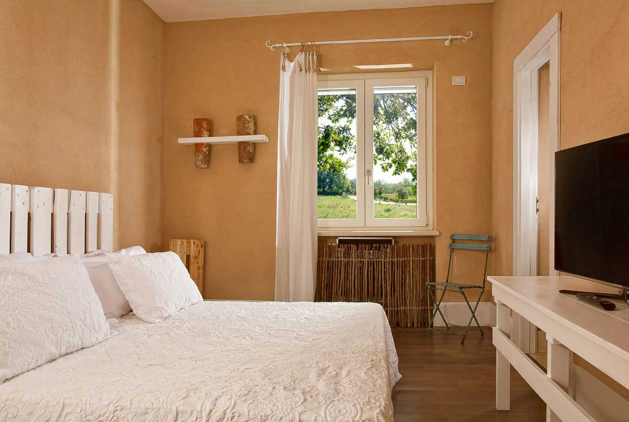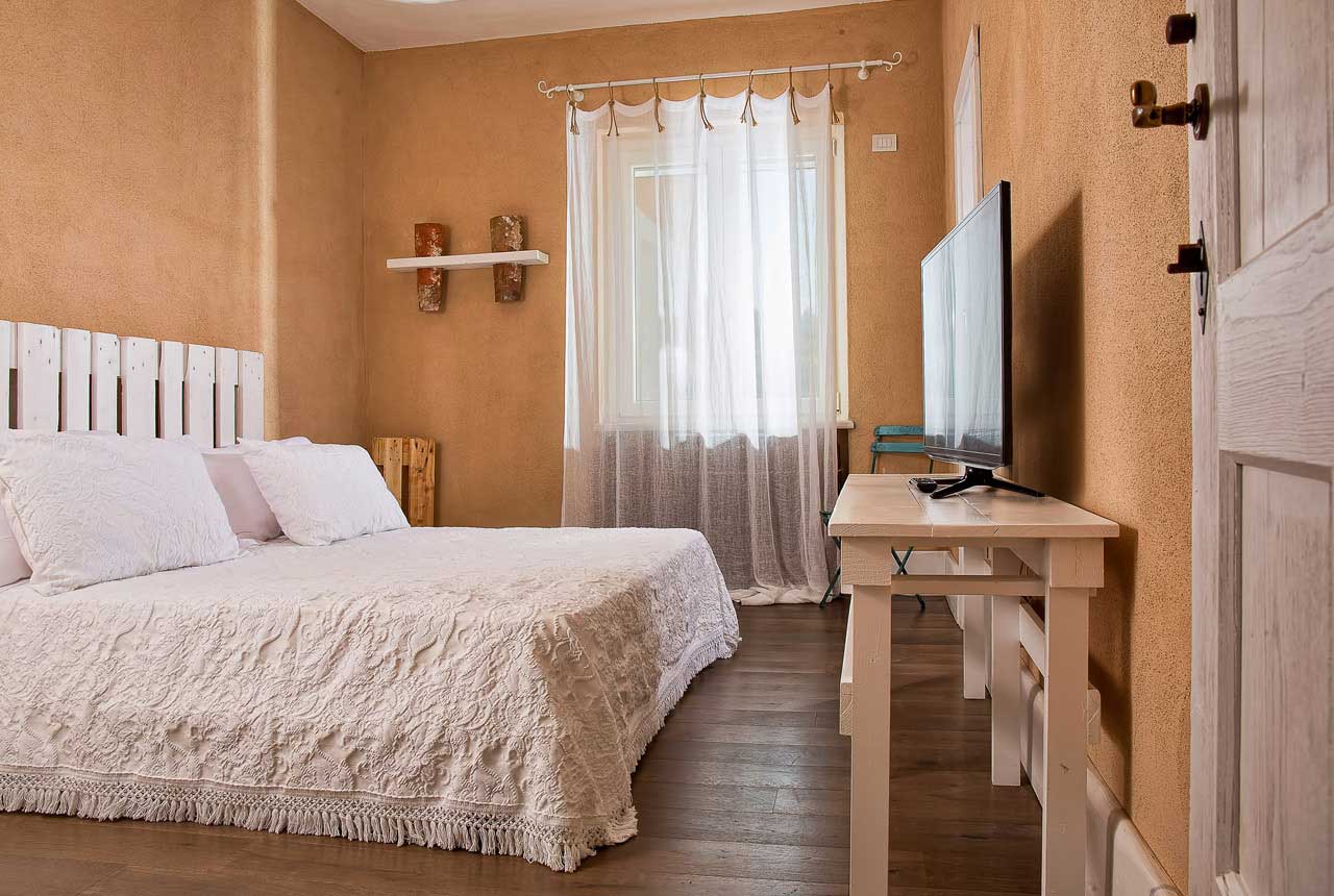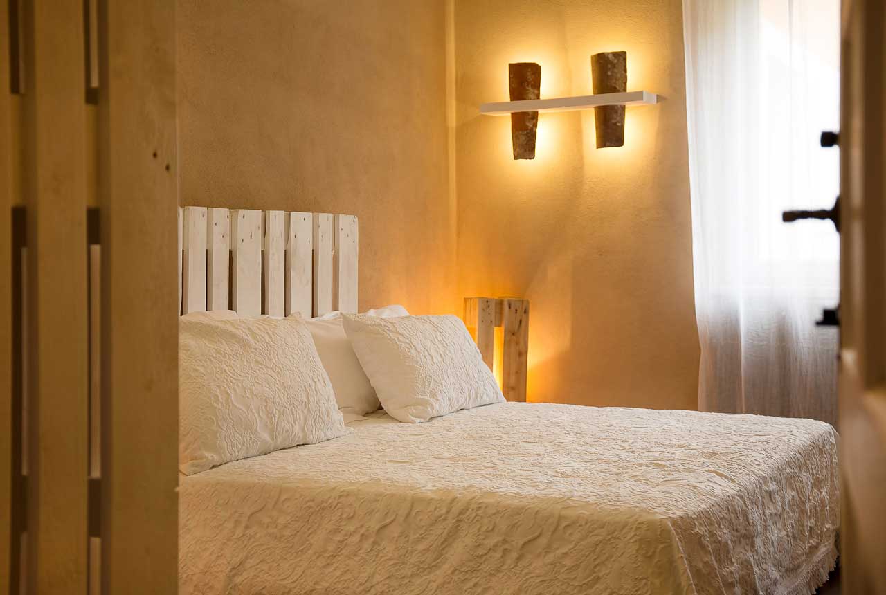 Anch’essa luminosa e confortevole, con vista sull’orto giardino del Relais, questa graziosa camera è caratterizzata principalmente dalla presenza deipallet, le classiche piattaforme di legno tipiche di questo antico mestiere, che culminano nell’imponente testiera del letto e nelle alteabat-jourche conferiscono un aspetto davvero unico ad una camera ricca di spessore oltre che di preziosi dettagli.v